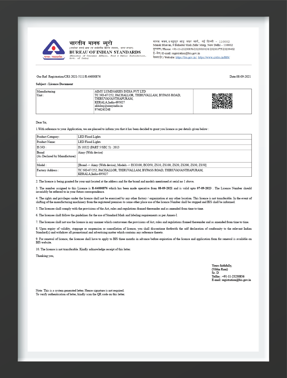 BIS Certificate