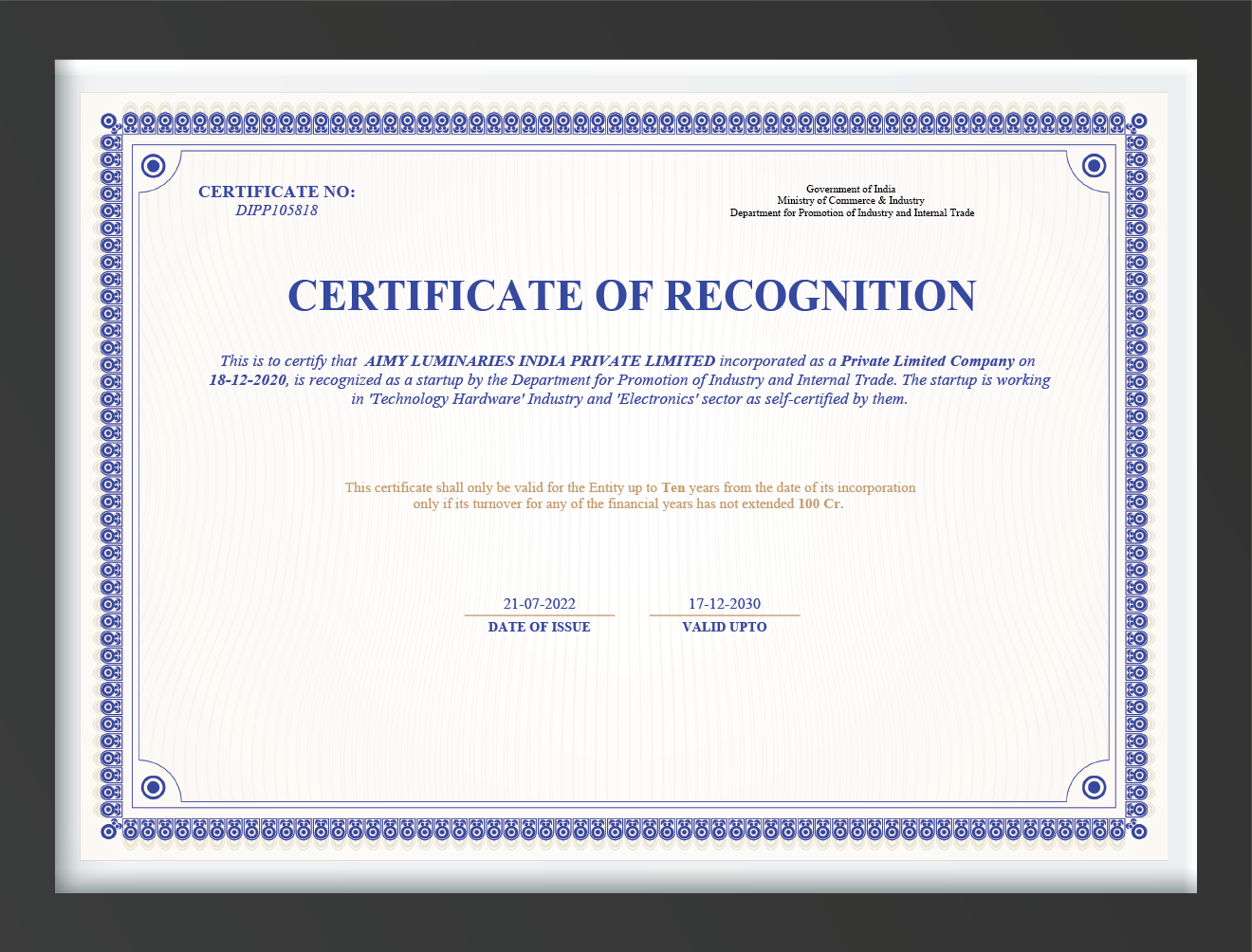 Certificate of Recogination